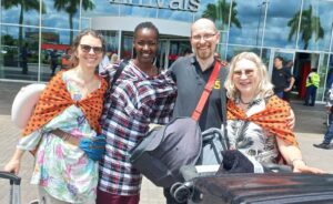 Przed nami ostatnia kontrola bagażu. Maria z kierowcą Czekają na nas od kilku godzin. “Proszę pokazać, co macie w bagażach. Celnik otworzył jeden z bagażu, wyśpiewaliśmy mu wszystko: z czym jedziemy, że do Tanzanii, że do Masajów, że do księdza z prezentami dla masajskich dzieci… Uśmiechnął się i powiedział, że nie musimy pokazywać mu kolejnych pięciu walizek. Zadowoleni, że tak szybko przyszliśmy kontrolę celną łapiemy za walizki i zmierzamy do szklanych drzwi wolności. Niestety nie zdążyliśmy. Przechwytuje nas celniczka: “Nie, nie, proszę pokazać wszystkie walizki”. Stefan drży, bo w jednej z walizek ma drona, którego nie wolno przewozić przez granicę, ale nie pamięta do której walizki go zapakował. Otwieramy na chybił trafił drugą walizkę. Stefan modli się, żeby nie było w niej drona, bo tego nie wolno przewozić (STEFAN: bez przesady z tym modleniem 😀 ). Nie ma drona. Są zwykłe zabawki, na co celniczka bierze jedną do ręki i mówi, że musimy zapłacić cło. Na naszych twarzach przerażenie, wszystkie pięć walizek wypełnione są po brzegi prezentami dla Masajów.