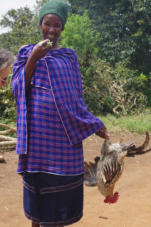 Potem wybrałyśmy się na spacer po okolicy. Znalazłyśmy się na pastwiskach, gdzie wypasane są stada kóz i krów. Trawka tam była niziuteńka, po prawej i po lewej stronie znajdowały się pola kukurydzy i słoneczników zabezpieczone gałęziami (prowizoryczne ogrodzenia), żeby zwierzęta nie narobiły szkody. Pastwiska były na wzniesieniu, więc można było wzrokiem ogarnąć całą sawannę. W oddali rozciągały się pojedyncze wzgórza. Oczywiście napotkałyśmy pasterzy: jeden samotny bez zwierząt, drugi ze stadem kóz, a trzeci ze stadem krów. Stoi pasterz zadziwiony i uśmiechnięty, kiedy witamy go po masajsku “Papa supai” (dostałyśmy lekcję najważniejszych zwrotów od Rebeki). On odpowiada “Upa” i od razu próbuje nawiązać kontakt i z nami porozmawiać. Niestety, nasza znajomość masajskiego na tym się kończy. Więc zachowując twarz, mówimy jeszcze do widzenia po masajsku “Sere”, machamy sobie nawzajem na pożegnanie.