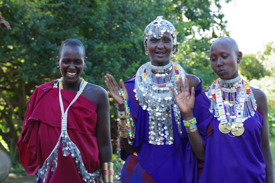 Zostaliśmy więc ze Stefanem sami. Spędziliśmy dzień w masajskiej wiosce, bawiąc się z dziećmi. Jak zwykle w odwiedziny do Mahoo przychodziło dużo osób. Przyszła siostra Marii od innej matki, przyszła najstarsza mama, czyli żona Mzee Nyiki, która ma dobry kontakt z Marii rodziną. Wzięłam obiektyw odpowiedni do robienia portretów, więc się za to zabrałam. Najpierw młodzież, która przyszła w odwiedziny, krępowała się, jak robiłam im zdjęcia. Jednak, kiedy dziewczyny (pewnie jakieś kuzynki Marii) zobaczyły, że wychodzą ładne zdjęcia portretowe, zapragnęły mieć portret w biżuterii zrobionej specjalnie dla panny młodej. Zaczęły się przebieranki. Każda z nich ubierała strój panny młodej i pozowała uśmiechając się do obiektywu. W pewnym momencie podniosłam rękę pokazując, żeby się trochę przesunęły. Dwie dziewczyny, które pozowały, uniosły ręce w podobnym geście, jak ja. Pomyślały, że pokazuję im pozę w jakiej mają stać. Cała scenka była komiczna, bo przyszła trzecia dziewczyna, która zrywała boki z koleżanek zamrożonych w komicznej pozycji. Widać było, że pyta czemu tak stoją, ale one nie wiedziały 🙂